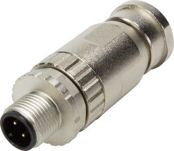 Kabelsteckverbinder, gerade, Stift, A-Kodierung, Schraubanschluss, Polyamid (PA), Kontakte: 5, Messing Au über Ni steckseitig, Leiterquerschnitt: 1,5 mm² max., Bemessungsstrom: 4 A, Zink-Druckguss, Schraubverriegelung, Schutzart: IP67 im gesteckten Zustand