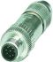 Kabelsteckverbinder, gerade, Stift, A-Kodierung, IDC-Schneidklemmanschluss, Polyamid, Kontakte: 8, Messing, vergoldet, Leiterquerschnitt: 0,14...0,34 mm², Bemessungsstrom: 2 A, Zink-Druckguss, Schraubverriegelung, Schutzart: IP65 / IP67, im gesteckten Zustand