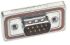 Steckverbinder, mit rückwärtigem Rahmen, Wellenlötanschluss, Bemessungsstrom: 5 A, Stift, Baugröße: D-Sub 5, Thermoplastischer Formstoff, glasfaserverstärkt, Shell: Messing, verzinnt, rot, Kontakte: 50 mit Massekontakt, Kupferlegierung, Edelmetall über Ni