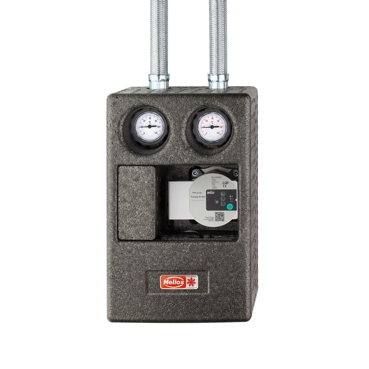 Hydraulikeinheit zur Regelung der Heizleistung des Warmwasser-Heizregisters in Verbindung mit Raum- / Kanalfühler. Lieferumfang: Vorlauf- und Rücklauf-Temperaturanzeige, Pumpe, Stellmotor, Mischventil, Schwerkraftbremse, thermische Ummantelung und flexibl