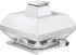 Horizontal ausblasender Dachventilator mit wirkungsgradoptimiertem Aluminiumgehäuse und neu entwickeltem Hochleistungs-Radiallaufrad. Gehäuse aus seewasserbeständigem Aluminium mit integriertem Eingriffsschutz. Motortragplatte und Grundplatte mit Einströmdüse aus verzinktem Stahl. Grundplatte mit Gewindeschrauben zum Befestigen von saugseitigem Zubehör (Lochbild nach DIN 24155, Bl. 3). Schutzgitter serienmäßig an der Ausblasseite entsprechend DIN EN ISO 13857. Hochleistungs-Radial-Laufrad mit rückwärts gekrümmten Schaufeln aus Aluminium. Dynamisch gewuchtet nach DIN ISO 1940-1. Drehzahlsteuerbarer IEC-Normmotor mit Eigenbelüftung in geschlossener Bauart in IP 54. Kugelgelagert mit Feuchtschutzisolation. Wartungs- und funkstörungsfrei. Serienmäßig mit außenliegendem Revisionsschalter Schutzart IP 65.