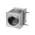Kompaktes Warmwasser-Heizregister zum Rohrstrecken-Einbau. Gehäuse aus verzinktem Stahlblech mit beidseitigen Anschlüssen mit Gummi-Lippendichtung zum Einbau in Normrohre. Wärmetauscher: Kupfer-Rohre, aufgepressten Aluminium-Lamellen. Betriebstemperatur max. 100 °C, Betriebsdruck max. 8 bar. Wasseranschlussrohre mit Außengewinde. Wasseranschlussseitig zwei Revisionsdeckel zur einfachen Montage.