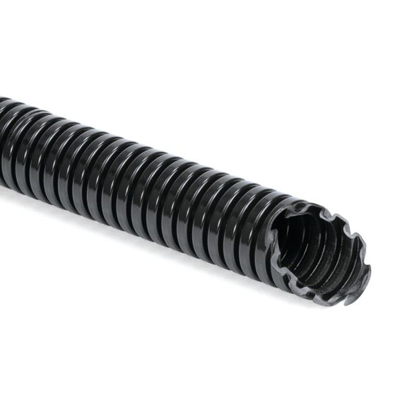 Schwere Ausführung. Hohe mechanische Festigkeit und hochschlagfest. Abriebfest. Sehr gut beständig gegen Lösungsmittel und Öle . Selbstverlöschend nach UL94 V2. Halogen-, schwefel- und phosphorfrei. Farbe: Schwarz. Das dickwandige, flexible Wellrohr wirt dort eingesetzt wo besonderer mechanischer Schutz von Kabeln und Leitungen gefordert ist, wie z. B. im Maschinen- und Anlagenbau und in Gebäuden.