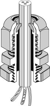 Anbau-Kabelstutzen für Vorprägungen M 63. Dichtbereich Ø 35-42 mm.