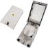Bestückt mit Kupplung und Pigtails (24xLC/APC) Maße: 209*341*91 mm - kompaktes Design - Arretierter und abnehmbarer Deckel, versiegelbar und abschließbar · - IP 54 Schutz - Genehmigt nach dem Materialkonzept des Bundes Die Box ist aus einem robusten Kunststoffmaterial mit UV-stabilen Eigenschaften hergestellt. Der Deckel wird nach oben geöffnet und rastet für die Montage im geöffneten Zustand ein. Über einen Schnellverschluss kann der Deckel auch leicht abgenommen und wieder eingesetzt werden. Die Kundenanschlussbox kann über 2 seitliche Siegeldrahtführungen oder dem eingesetzten Schloss gegen unberechtigten Zugriff geschützt werden. Im unteren Bereich sind 4 Durchführungen eingebracht, die im Lieferzustand verschlossen sind. Je nach Bedarf werden diese herausgetrennt und mit den benötigten Dichtungssätzen (Grommets) bestückt. Es liegen folgende Dichtungsätze bei: 1 x Ø 10 mm, 2 x Ø 7 mm, 3 x 12 x Ø 5 mm, 2 x 24 x bis Ø 3 mm. Im unteren Fasermanagement (Bodenplatte) ist ausreichend Platz zur Ablage von Überlängen vorgesehen. Vier Clip-Halterungen für PLC-Splitter sind eingebracht. Zwei Crimpspleißhalter für je 12 Spleiße liegen der Kundenanschlussbox bei und können im unteren Fasermanagement eingesetzt werden. Im herausnehmbaren Klapp-Halter können bis zu 24 LC-Duplex-Kupplungen eingesetzt werden. Somit können bis zu 48 Fasern (LC) über Steckverbindungen herausgeführt werden, alternativ kann die Kundenanschlussbox als reiner Spleissverteiler oder auch mit anderen Kupplungen genutzt werden.