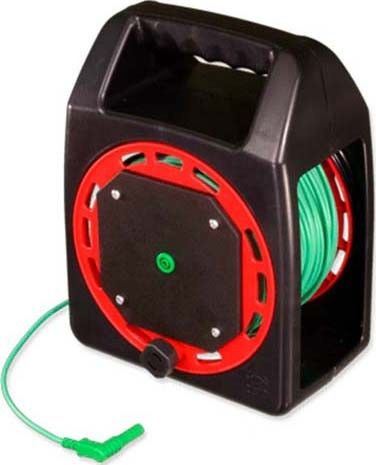 Verlängerungsleitung 30 m, grün, auf praktischer Kabeltrommel, doppelt isolierte Silikonleitung, ideal für die Isolationsmessung, sowie zur Messung von Schutz- und Potentialausgleichsleiter, Strombelastung max. 20 A, Anschluss: Ø 4 mm Sicherheitsprüfbuchse/-stecker