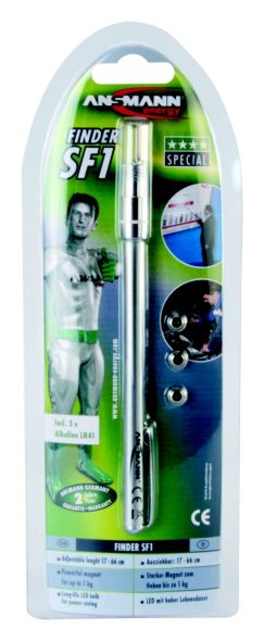 Der Search & Find Stick SF-1 von ANSMANN ist zwar nur in etwa so groß wie ein Kugelschreiber, aber er hat es in sich. Als Zeigestock kann dieses pfiffige Produkt von 17 66 cm verlängert werden. Der Clou dabei: Die Spitze ist mit einem starken Magneten und mit Beleuchtung ausgestattet! Damit können schwer zugängliche Teile bis zu einem Kilogramm Gewicht geborgen werden. Das Einsatzgebiet erstreckt sich von verloren gegangenen Schlüsseln über Schrauben bis hin zu Werkzeugen. Die mit einer hellen LED beleuchtete Spitze macht das Suchen und Finden auch in dunklen Ecken und Maschinen sehr einfach. Die langlebige LED wird von 3 Knopfzellen (LR 41) gespeist.