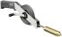 Rostfreies Stahlmaßband mit Tiefenätzung, 13 mm breit, Millimetereinteilung, Rahmen aus Aluminium. Das Band ist mit einem spitzen Messinglot versehen und wird zur Tiefenmessung z. B. in Tanks und Brunnen eingesetzt.