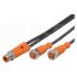 Verbindungstechnik, Y-Verbindungskabel, 2-fach, M12, 5-polig, 4-Leiter, AC/DC, Betriebsspannung: 60 V AC, 60 V DC, M12-Stecker / 2x M12-Kupplung, 0,3 m, PUR-Kabel, 5 x 0,34 mm², silikonfrei , halogenfrei , Kontakte vergoldet, Werkstoff Gehäuse: Kabelstecker: TPU orange Kabeldose: TPU orange Dichtung: Viton, Werkstoff Überwurfmutter: Messing vernickelt