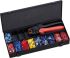 Metallkoffer schwarz, 13 Fächer, bestückt mit Basiswerkzeug MPU, Quetschkabelschuhn isoliert Ringform DIN 46237 von 1,0-6,0qmm, Stossverbindern isoliert von 1,0-2,5qmm, Flachsteckhülsen isoliert von 1,0-2,5qmm