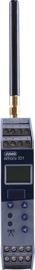 Der Funk-Empfänger wird in Verbindung mit passenden Sendern zur mobilen oder stationären Messung der physikalischen Größen eingesetzt. Durch den Einsatz zukunftsweisender Funktechnologie der industriellen Funkfrequenz 868,4 MHz ergibt sich eine deutliche Reduzierung des Installationsaufwandes. Leitungsverbindungen können entfallen, die funkbasierte Sensortechnik funktioniert auch in rauer Industrieumgebung. Die mitgelieferte Lambda/4-Antenne mit einer Impedanz von 50 Ohm kann direkt aufgeschraubt oder extern montiert werden. Wird die optional lieferbare Antennen-Wandhalterung mit 3 m langer Antennenleitung verwendet, beträgt die Freifeldreichweite 300 m. Die vom Sender empfangenen Messwerte werden im Empfänger umgeformt, angezeigt und stehen als lineare Strom- oder Spannungssignale (0(4) bis 20 mA, 0 bis 10 V) und über digitale Schnittstelle RS485 zur Verfügung. Beide Analogausgänge des Empfängers sind galvanisch getrennt. Des Weiteren stehen noch zwei Relaisausgänge zur Verfügung. Über die digitale Schnittstelle mit Modbus-Protokoll ist eine Anbindung an übergeordnete Systeme, so beispielsweise an Anlagenvisualisierungs-Software oder Modbus-Master-fähigen Bildschirmschreibern möglich. Die Bedienung und Konfiguration ist über die Tastatur in Verbindung mit einer zweizeiligen LCD-Anzeige oder komfortabler durch ein Setup-Programm möglich. So können für jeden Kanal getrennt Parameter wie Filterkonstanten, Offset, Alarme sowie Schleppzeiger (Minimal- und Maximalwertspeicher) eingestellt werden. Hierfür befindet sich frontseitig ein Stecker für ein PC-Interface mit TTL/RS232- oder USB/TTL-Umsetzer zur Verbindung zwischen Empfänger und PC. Der Empfänger im Tragschienen-Gehäuse ist zur Montage auf Hutschiene 35 × 7,5 mm nach DIN EN 60715 vorgesehen. Die Schraubklemmen für den elektrischen Anschluss sind in verschiedenen Ebenen angeordnet. Der Leitungsquerschnitt darf maximal 2,5 mm2 betragen. Als Spannungsversorgung dient ein Anschluss an AC 110 bis 240 V +10/-15 %, 48 bis 63 Hz.