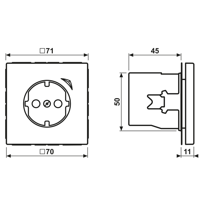 JUNG HOME Schutzkontakt® Steckdose, outremer moyen mit integriertem erhöhten Berührungsschutz (Safety Plus) mit Schraubklemmen für starre und flexible Leiter bis 2,5 mm2 Verbindungsklemmen nach DIN VDE 0620 Tragring, Krallen und Krallenschrauben sind über eine Erdungsschiene in die Schutzmaßnahme eingebunden. Bestimmungsgemäßer Gebrauch Manuelles oder automatisches Schalten von Beleuchtung und haushaltsüblichen Geräten Drahtlose Verknüpfung mit Geräten des JUNG HOME Systems Einsatz im trockenen Innenbereich Montage in Gerätedose mit Abmessungen nach DIN 49073 Tiefe der Gerätedose (Innenmaß): min. 53 mm Produkteigenschaften Inbetriebnahme und Bedienung über JUNG HOME App mit mobilem Endgerät (Smartphone oder Tablet) über Bluetooth® Taste zum Schalten Mehrfarbige Statusanzeige mit optionalem Nachtmodus Sperren der lokalen Bedienung Bis zu 16 Zeitprogramme Einbindung der Last in Bereiche (Gruppen), Zentralfunktionen und Szenen Automatikfunktionen aktivieren/deaktivieren über JUNG HOME App Automatische Datum- und Uhrzeitaktualisierung bei Verbindung mit Smartphone Integrierter Schaltaktor mit 16 A Bluetooth® SIG Mesh für voll verschlüsselte drahtlose Kommunikation und Repeaterfunktion Updatefähig über JUNG HOME App Zukünftig per Update verfügbar: (Hinweise zu Updates und Terminen finden sie unter jung.group/junghome) Sperr- und Zwangsführung: Dauer-EIN/AUS oder für feste Zeit EIN/AUS Zeitprogramme mit Sonnenauf- bzw. Sonnenuntergang (Astrotimer) Zeitprogramme mit Zufallszeitpunkt Ein-/ Ausschaltverzögerung Material: Thermoplast lackiert Maße (B x H): 70 x 70 mm