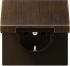 Schutzkontakt®-Steckdose, Messing antik mit Klappdeckel (mit Rückstellfeder) mit Schraubklemmen für starre und flexible Leiter bis 2,5 mm2 Verbindungsklemmen nach DIN VDE 0620 Metallausführungen nicht für Deckenmontage geeignet. Material: Messing Maße (B x H): 70 x 70 mm