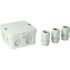 Abzweigkasten AK1-IP65 M25 mit Kabelverschraubungen (AT2500). Halogenfrei: Ja | Tiefe: 45 mm | Länge: 95 mm | Breite: 95 mm | Farbe: lichtgrau | Max. Leiterquerschnitt: 6 mm² | Bemessungsspannung: 690 V | Schutzart: IP65 | Kabelverschraubungen: 3 | Metrischer Gewindeanschluss: M25 | Klemmbereich: 10-17 mm