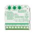Dieses Mehrfachsteuergerät kann sowohl als vorgeschaltetes Gruppensteuergerät als auch als Motorsteuergerät in Rollladen- oder Jalousiesteuerungen verwendet werden. Es handelt sich um ein intelligentes Steuergerät mit einem Steuerausgang und zwei Steuereingängen. Über die Dreh-Potenziometer am Gerät lassen sich die Laufzeit zwischen 3 und 240 Sekunden und der Verwendungszweck (z.B. Gruppensteuerung f. Rollladenantriebe, Gruppensteuerung f. Jalousieantriebe, Einzelsteuerung Rollladenantriebe, etc.) einstellen sowie ein automatischer Rücklauf zwischen 3 Sekunden und 30 Minuten aktivieren. Die Vor-Ort-Bedienung arbeitet mit einer Selbsthaltung entsprechend der eingestellten Laufzeit während die vorrangige Zentralbedienung im Totmannbetrieb arbeitet. Die maximale Schaltleistung beträgt 8 Ampere. Als Bedienelement können Taster, Schalter und Zeitschaltuhren eingesetzt werden. Die Steuer-, Versorgungs- und Schaltspannung beträgt 12-24V DC. Die hochwertigen Schraubklemmen haben unverlierbare Schrauben und halten viele Öffnungen und Schließungen aus. Mit einer Bautiefe von gerade einmal 19mm ist das Gerät ideal für den Einsatz in Unterputzdosen geeignet. Abmessungen: 43x43x19mm