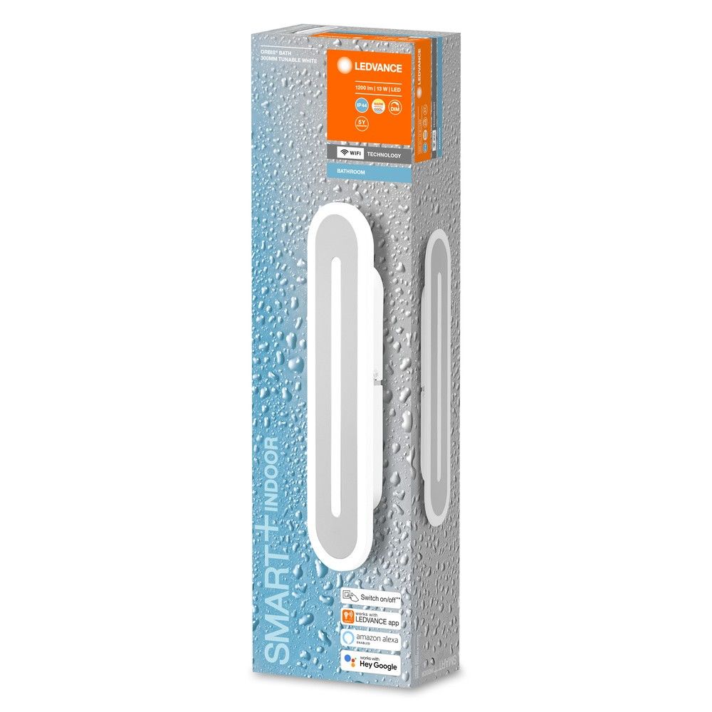 Smart Badezimmer dekorative Decke und Wand mit WLAN-Technologie IP44 TW und dimmbar. Produkteigenschaften: Schutzart: IP44. Steuerbar mit der LEDVANCE SMART+ App (mit Minimum Android 8.0 oder iOS 14.0). Steuerung über Google Assistant oder Amazon Alexa möglich. Farbtemperatur über Tunable White einstellbar: 3.000...6.500 K. Dimmbar. Netzwerkprotokoll: WiFi. Produktvorteile: Einfache und schnelle Installation. Anwendungsgebiete: Badezimmer. Technische Ausstattung: Tragbügel enthalten. Inklusive Montageschrauben und Dübel. Steuerung über App oder Sprachsteuerung erfordert kompatibles Smart-Home-System. Für die Steuerung mit der LEDVANCE SMART+ App wird ein Handy oder Tablet (mit Minimum Android 8.0 oder iOS 14.0) benötigt. Sicherheitshinweise: Prüfen Sie die Wand/Decke auf ihre Eignung. Wenn Sie unsicher sind, holen Sie professionellen Rat ein.. Alle elektrischen Anschlüsse dürfen nur von qualifiziertem Fachpersonal ausgeführt werden.. Vorsicht, Gefahr des elektrischen Schlages..