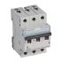 Legrand Leitungsschutzschalter TX3 nach EN 60898-1, VDE 0641-11, EN 60947-2, 3-polig, B-Charakteristik, Bemessungsstrom In 4 A, Bemessungsschaltvermögen Icn 6 kA nach EN 60898-1, Bemessungsspannung Un 400 VAC, Bemessungsfrequenz 50/60 Hz, Energiebegrenzungsklasse 3, Befestigung auf Hutprofilschiene EN 60715 durch eine rastende Schnellbefestigung, klare Information vorne auf jedem Gerät, eindeutige Schaltstellungsanzeige rot/grün am Schalthebel, mit Beschriftungsfenster, mit Untersteckschutz zum sicheren Einführen des Leiters in Fahrstuhlklemme, Anbau von Hilfsgeräten möglich. Leitungsschutzschalter mit B-Charakteristik sind vornehmlich für den Leitungsschutz in Licht- und Steckdosen-Stromkreisen bestimmt.