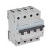 Legrand Leitungsschutzschalter TX3 nach EN 60898-1, VDE 0641-11, EN 60947-2, 4-polig, C-Charakteristik, Bemessungsstrom In 10 A, Bemessungsschaltvermögen Icn 10 kA nach EN 60898-1, Bemessungsspannung Un 400 VAC, Bemessungsfrequenz 50/60 Hz, Energiebegrenzungsklasse 3, Befestigung auf Hutprofilschiene EN 60715 durch eine rastende Schnellbefestigung, klare Information vorne auf jedem Gerät, eindeutige Schaltstellungsanzeige rot/grün am Schalthebel, mit Beschriftungsfenster, mit Untersteckschutz zum sicheren Einführen des Leiters in Fahrstuhlklemme, Anbau von Hilfsgeräten möglich. Leitungsschutzschalter mit C-Charakteristik sind für den Leitungsschutz bei Geräten mit hohen Einschaltströmen (z.B. Motoren und Transformatoren) vorgesehen.