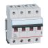 Legrand Leitungsschutzschalter TX3 nach EN 60898-1, VDE 0641-11, EN 60947-2, 4-polig, C-Charakteristik, Bemessungsstrom In 20 A, Bemessungsschaltvermögen Icn 10 kA nach EN 60898-1, Bemessungsspannung Un 400 VAC, Bemessungsfrequenz 50/60 Hz, Energiebegrenzungsklasse 3, Befestigung auf Hutprofilschiene EN 60715 durch eine rastende Schnellbefestigung, klare Information vorne auf jedem Gerät, eindeutige Schaltstellungsanzeige rot/grün am Schalthebel, mit Beschriftungsfenster, mit Untersteckschutz zum sicheren Einführen des Leiters in Fahrstuhlklemme, Anbau von Hilfsgeräten möglich. Leitungsschutzschalter mit C-Charakteristik sind für den Leitungsschutz bei Geräten mit hohen Einschaltströmen (z.B. Motoren und Transformatoren) vorgesehen.