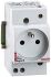 Legrand Verteilereinbausteckdose, Französischer Standard, 10/16A 250 VAC, 2p+E, mit Schraubanschlussklemmen, 2-5-modulig, Befestigung auf Hutprofilschiene EN 60715 durch rastende Schnellbefestigung.