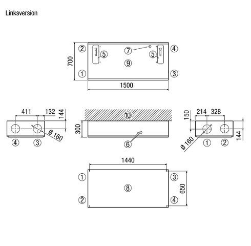 - Einbauort: Wand / Decke