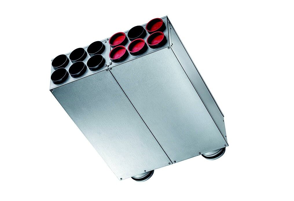 - 2 Rohranschlüsse geräteseitig (Ø 125 mm) und 12 Anschlüsse raumseitig (Ø 75 mm).