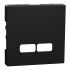 Für System M. Die Zentralplatte ist mit Federn ausgestattet, die eine einfache Befestigung am Befestigungsrahmen ermöglichen. Die Zentralplatte ist aus recyceltem Material hergestellt, das aus Industrieabfällen besteht. Die Farbe ist schwarz in Anlehnung an RAL9005 mit einer matten Oberfläche durch die Lackierung. Das Produkt ist für die Verwendung von IP20 bei Unter- oder Aufputzmontage entwickelt worden. Für USB Ladestation-Einsatz. Zu komplettieren mit USB Ladestation-Einsatz MEG4366-01xx. Material Thermoplast. Farbe schwarz matt.