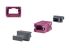 MTP® Kupplung aus Kunststoff, Farbe violett für OM4, Bauform SC simplex mit Metall-Clip, ohne Flansch, mit zwei Staubschutzkappen, für Belegungsvariante Typ B (key up/key up = aligned), hohe Materialstabilität, Oberflächenqualität und Lebensdauer, Lebensdauer min. 500 Steckzyklen, Varianten: grün (OS2), lindgrün (OM5), violett (OM4), aqua (OM3), jeweils einzeln verpackt, MTP® ist ein eingetragenes Warenzeichen der Fa. US Conec Ltd., USA