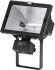 Für Halogen-Glühlampen (QT-DE 12) Schutzklasse I, IP65, IK07 Leuchte aus Aluminium-Druckguss, Polyesterpulver beschichtet, achsensymmetrischer Aluminiumreflektor Struktur geglänzt, alle äußeren Stahlteile rostfrei, temperaturwechselbeständiges Sicherheitsglas, Silikondichtung, Rahmen klappbar, Montagebügel aus Edelstahl, 2 Bohrungen Durchmesser 9 mm, Abstand 70 mm, 1 Mittelloch Durchmesser 10,5 mm, Neigungsbereich 100 Grad, Kabelanschluss: PG13,5, serienmäßig ohne Lampe
