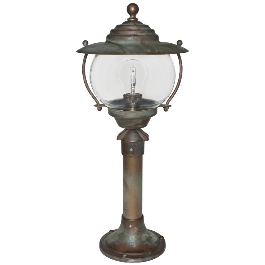 Außensockelleuchte, IP43, Altmessingguss patiniert, klares Glas, schwere seewasserfeste Ausführung