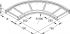 Bogen 90°, mit gesickten, runden und ungelochten Seitenholmen, mit Verbinderlochung für den Anschluss, für Weitspannkabelrinnen, formstabil durch den vollflächig eingenieteten, gesickten und ungelochten Boden, zur Herstellung von horizontalen 90° Abgängen. Stoßstellenverbinder WSV 105.390 bitte gesondert bestellen. Die Formstückradien sind so ausgelegt, dass die Verlegung der Kabel gemäß DIN/VDE 0298 Teil 3 erfolgen kann. Stoßstellen müssen in unmittelbarer Nähe durch eine entsprechende Tragkonstruktion unterstützt werden. Verwendbar für : Weitspannkabelrinne WRL 105... Weitspannkabelrinne WRU 105... Abmessungen (ca. Maße) Höhe H x Breite B : 105 x 400 mm Abmessungen außen : 750 mm + B Innenholmradius R : 500 mm Werkstoff : Stahl, tauchfeuerverzinkt nach DIN EN ISO 1461