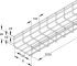 Gitterrinne nach DIN EN 61537, U-förmig, aus Stahldrähten, punktgeschweißt, ohne Verbinder. Verbinder MTSCO 6 bitte gesondert bestellen. Für eine optimale Belastung der Gitterrinne beachten Sie hierzu bitte die Angaben zu Anzahl sowie die genaue Positionierung der Verbinder. Abmessungen (ca. Maße) NennMaße H x B (innen) : 105 x 100 mm Längsdraht-Ø : 6,0 mm Bodenlängsdrahtabstand : 50 mm Querdraht-Ø : 6,0 mm Querdrahtabstand : 100 mm Lieferlänge L : 3000 mm Nutzbarer Querschnitt : 20036 mm² Werkstoff : Edelstahl, Werkstoff Nr. 1.4301, AISI 304