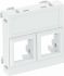 Datentechnikträger mit geradem Auslass, ohne Verschlussschieber, zur Aufnahme von zwei Datentechnik-Anschlussmodulen mit RJ45-Buchse. Die Rastbefestigung eignet sich für den waagerechten und senkrechten Einbau in die Systemumgebung. Typ LE hat eine spezielle Modulaufnahme und ist für eine indirekte Befestigung der Daten-Anschlussmodule in der Montageöffnung ausgelegt.