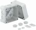 Kabelabzweigkasten mit Klemmleiste zum Verbinden von Kabeln und Leitungen im Innen- und Außenbereich. Quadratische Form mit Ausschlageinführungen. Geeignet für die Wand-/ Deckenmontage mit der Möglichkeit zur Außenbefestigung, Innenbefestigung oder Montage über die Eckdome. Besonders schlagfest mit IK09. Deckel mit Schnellverschluss, plombierbar. Hergestellt aus halogenfreien und UV-resistenten Materialien. Inklusive Klemmleiste, 5-polig. Kabelabzweigkasten gemäß DIN EN 60670. Flammwidrig nach DIN EN 60695-2-11, Prüftemperatur 650°C. Schlagfestigkeit IK09 gemäß DIN EN 50102. Schutzart IP67 gemäß DIN EN 60529.