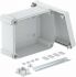Kabelabzweigkasten mit Hutprofilschiene zum Verbinden von Kabeln und Leitungen im Innen- und Außenbereich. Rechteckige Form ohne Einführungen. Geeignet für die Wand-/ Deckenmontage mit der Möglichkeit zur Außenbefestigung, Innenbefestigung oder Montage über die Eckdome. Besonders schlagfest mit IK09. Deckel mit Schnellverschluss, plombierbar. Hergestellt aus halogenfreien und UV-resistenten Materialien. Inklusive Hutprofilschiene 2069 und Befestigungsset. Kabelabzweigkasten gemäß DIN EN 60670. Schlagfestigkeit IK09 gemäß DIN EN 50102. Schutzart IP67 gemäß DIN EN 60529.