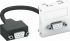 Multimediaträger mit einer D-Sub9-Anschlussbuchse, Kabelauslass gerade, mit Beschriftungsfeld, kurzes D-Sub9-Anschlusskabel (RS232) in Ausführung Buchse-Buchse. Träger mit Rastbefestigung, geeignet für den waagerechten und senkrechten Einbau in die Systemumgebung.