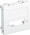 Multimediaträger für einen DVI Steckverbinder, Kabelauslass gerade, mit Beschriftungsfeld, ohne Steckverbinder. Trägerplatte mit Rastbefestigung, geeignet für den waagerechten und senkrechten Einbau in die Systemumgebung.