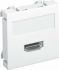 Multimediaträger mit einer HDMI Anschlussbuchse, Kabelauslass gerade, mit Beschriftungsfeld, HDMI Buchse mit Schraubanschluss. Trägerplatte mit Rastbefestigung, geeignet für den waagerechten und senkrechten Einbau in die Systemumgebung.