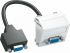 Multimediaträger mit einer VGA-Anschlussbuchse, Kabelauslass schräg, mit Beschriftungsfeld, kurzes VGA-Anschlusskabel (HD15) in Ausführung Buchse-Buchse. Träger mit Rastbefestigung, geeignet für den waagerechten und senkrechten Einbau in die Systemumgebung.