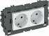 Schutzkontakt-Steckdose mit seitlichem Anschluss 2-fach 0°, mit erhöhtem Berührungsschutz, mit Steckklemmen, 2-polig, 16 A, 250 V~, mit Verbindungsklemmen nach IEC 60884-1, geeignet für den Einbau in Geräteeinbau-Kanalsysteme Rapid 80.