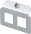 Trägerplatte zur Aufnahme von zwei Anschlussbuchsen der Datentechnik, Typ Panduit in Verbindung mit Panduit-Adapter CMNZABL-X oder CMNZAWH-X. Abmessung einer Montageöffnung in mm: 19,8 x 21,2.