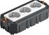 Der anschlussfertige Universalträger UTC3 verfügt über drei vorinstallierte 33° Schutzkontakt-Steckdosen mit 16 A. Passend zu den Verbindungsleitungen VL und den Geräteeinbaueinheiten der Nenngröße 2, 4, R4, 6 und R7.