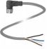 Kabeldose M12 gewinkelt A-kodiert, 4-polig, PUR-Kabel grau