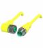 Verbindungskabel M12-Buchse gelb gewinkelt auf M12-Stecker gelb gerade A-kodiert, 5-polig, PUR-Kabel schweißspritzerbeständig gelb, UL-zugelassen, schleppkettentauglich, torsionsgeeignet, Länge: 20 m