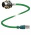 Buskabel Ethernet Einbauadapter M12-Buchse gerade D-kodiert auf RJ45 Ethernet-kodiert, 4-polig, PUR-Kabel grün, Cat5e, geschirmt, schleppkettentauglich, Länge: 1 m