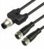 Y-Verbindungskabel M12-Stecker gerade A-kodiert auf 2x M12-Buchse gerade A-kodiert, 4-polig, 2x PUR-Kabel schwarz, UL-zugelassen, schleppkettentauglich, torsionsgeeignet