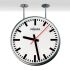 Außenuhr, rund, doppelseitig, wetterfestes Metallgehäuse aus Aluminium, Schutzart IP 54 (EN 60529), lackiert in Eisenglimmer (DB 703), stabile Deckenhalterung (Standardlänge ca. 210 mm), stoßgeschützte Kunststoffgläser (Acrylglas®XT). Weiße Metallzifferblätter mit schwarzen DIN-Balkenziffern, Zifferblattdruck nach DIN 41091. Schwarze DIN-Balkenzeiger für Stunden- und Minutenanzeige, bzw. rot für Sekundenanzeige. Betriebsspannung ist 12/24 V Minuten-/ Sekundenimpuls.