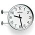 Außenuhr, rund, doppelseitig, wetterfestes Metallgehäuse aus Aluminium, Schutzart IP 54 (EN 60529), lackiert in Eisenglimmer (DB 703), stabile Wandhalterung (Standardlänge ca. 210 mm), stoßgeschützte Kunststoffgläser (Acrylglas®XT). Weiße Metallzifferblätter mit schwarzen arabischen Zahlen, Zifferblattdruck nach DIN 41091. Schwarze DIN-Balkenzeiger für Stunden- und Minutenanzeige. Betriebsspannung über PoE (Power over Ethernet), entsprechende Hardware ist bauseits zu stellen.