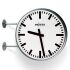 Außenuhr, rund, doppelseitig, wetterfestes Metallgehäuse aus Aluminium, Schutzart IP 54 (EN 60529), lackiert in Eisenglimmer (DB 703), stabile Wandhalterung (Standardlänge ca. 210 mm), stoßgeschützte Kunststoffgläser (Acrylglas®XT). Weiße Metallzifferblätter mit schwarzen DIN-Balkenziffern, Zifferblattdruck nach DIN 41091. Schwarze DIN-Balkenzeiger für Stunden- und Minutenanzeige. Betriebsspannung über PoE (Power over Ethernet), entsprechende Hardware ist bauseits zu stellen.