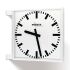 Außenuhr, auch für Hallen geeignet, quadratisch, doppelseitig, wetterfestes Metallgehäuse aus Aluminium, Stöße und Gehrungen sauber verschweißt, Schutzart IP 54 (EN 60529), 2-Schicht-Einbrennlackierung in Lichtgrau (RAL 7035), Wandhalterung (Standardlänge ca. 70 mm), stoßgeschützte, hoch-lichtdurchlässige Kunststoffgläser (Acrylglas), Stärke 4 mm. Weiße, hinterleuchtete Acrylkunststoffzifferblätter mit schwarzen DIN-Balkenziffern, Abm. 426 x 426 mm, Zifferblattdruck nach DIN 41091. Zifferblatt-Hinterleuchtung mit langlebigen, wartungsfreien LEDs, Betriebsspannung 230 V AC/50-60 Hz, komplett verdrahtet nach VDE. Schwarze DIN-Balkenzeiger für Stunden- und Minutenanzeige. Betriebsspannung über PoE (Power over Ethernet), entsprechende Hardware ist bauseits zu stellen.
